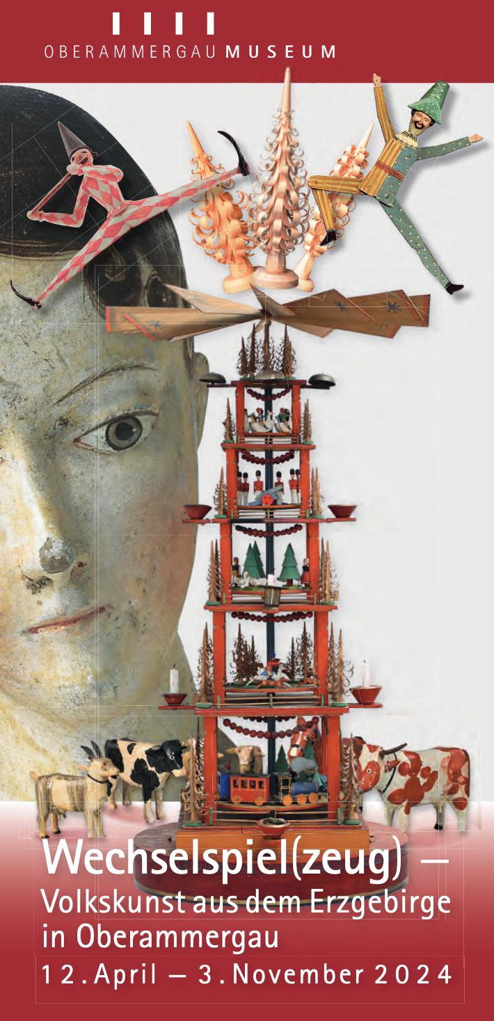 In dieser Ausstellung begegnen Exponate aus dem Erzgebirge Oberammergauer Objekten. Das Wechselspiel, die Möglichkeit zu vergleichen, sich in beide Regionen zu vertiefen, macht diese Ausstellung aus. Dank der vielfältigen Leihgaben privater Sammler können wir Exponate aus verschiedenen Regionen des Erzgebirges und aus mehr als 100 Jahren zeigen. Spielzeug bildet sozusagen die Welt im Kleinen ab und damit auch Geschichte und Geschichten. In vergangenen Jahrhunderten haben nicht nur Kinder gespielt, sondern auch Erwachsene – durch die Digitalisierung spielen kleine und große Menschen immer weniger mit real existierenden Objekten, die sie dabei anfassen und begreifen. Nicht zuletzt wollen wir mit dieser bunten Ausstellung Gelegenheit zur Freude am Spielerischen – Raum für Verspieltheit bieten.