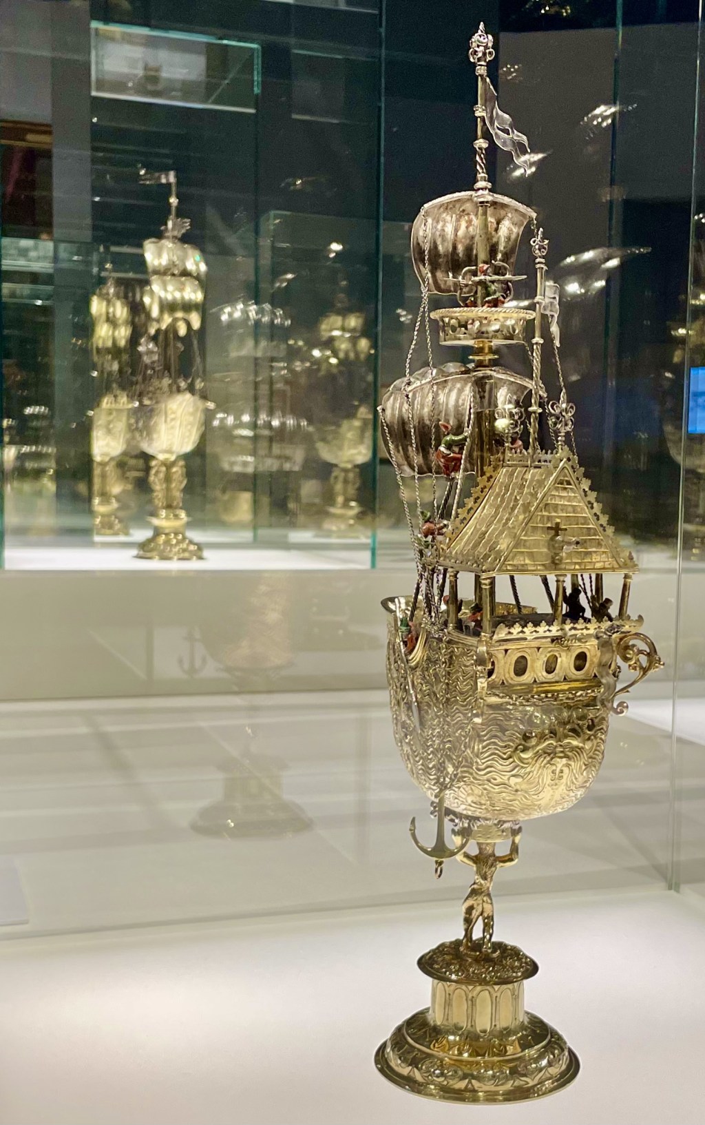 In dieser Ausstellung wird man in eine Zauberwelt entführt. Unfassbare Handwerkskunst, Kostbarkeit, Detail- und Erzählfreude der Silber- und Goldschmiede, vorrangig aus Augsburg und Nürnberg, prägt diese wunderbaren Schiffe, die hier durch die Vitrinen segeln. Mit vielen technischen und narrativen Raffinessen überraschen sie uns Spätgeborene – diese Schiffe waren damals ein wahrer Luxus, der kaum mehr zu steigern war.