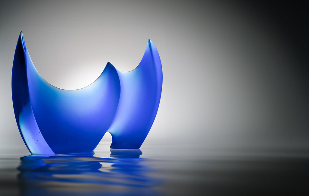 „Das Hauptaugenmerk meiner Arbeit liegt darauf, dynamische Formen zu schaffen, die von sinnlichen Linien getragen werden und sich allmählich von einer Idee auf Papier zu einer Skulptur in Glas entwickeln – und in Kombination mit Licht eine starke Wirkung auf den Betrachter haben.