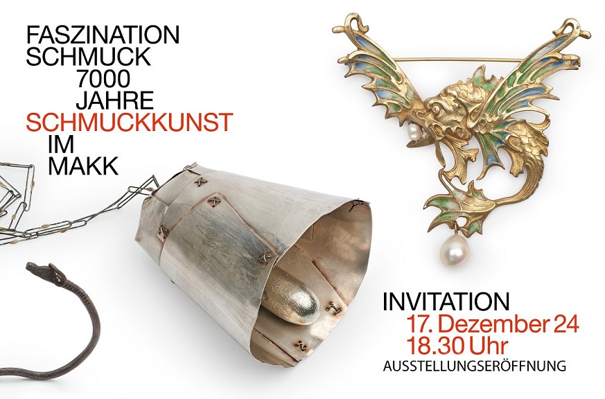 Das Museum für Angewandte Kunst Köln (MAKK) eröffnet mit „Faszination Schmuck“ die erste umfassende Ausstellung seiner herausragenden Schmucksammlung. Mit rund 370 ausgewählten Exponaten werden sieben Jahrtausende Schmuckkunst in allen ihren Facetten präsentiert. Das Spektrum reicht von altorientalischen Gemmen des 5. Jahrtausends v. Chr. bis zu zeitgenössischen Schmuckarbeiten.