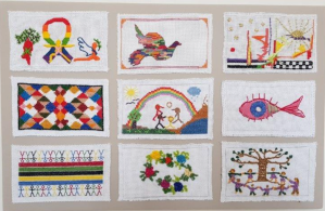 Nachdem mir über 200 Frauen aus 28 verschiedenen Nationalitäten (von Kanada bis Korea, von Schweden bis Guinea) ihre Stickereien zukommen ließen, habe ich auf weitere Zusendungen verzichten müssen. Es sind viele kleine Kunstwerke entstanden und jede Stickarbeit ist auf ihre Weise schön und einzigartig. Fast alle Frauen haben zu ihren Arbeiten kurze Texte geschrieben.