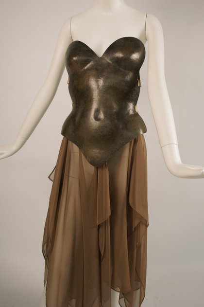 Neben Objekten von de Castelbajac, Gaultier und Yves Saint Laurent liegt der Fokus auf den frühen Entwürfen des jungen Manfred „Thierry“ Mugler. 1978 hatte er seine erste Boutique an der Place des Victoires eröffnet. Für ihn waren Frauen „Glamazonen“ – glamouröse und selbstbewusste Amazonen. Exemplarisch hierfür ist der in der Ausstellung präsentierte Brustpanzer mit passendem Zipfelrock aus der Frühjahr/Sommer-Kollektion 1980. In dieser Zeit erwirbt Erika Hoffmann in jeder Saison luftige Tageskleider, ausgefallene Jumpsuits, modische Alltagskleidung und ausgefallene Abendkleider des aufstrebenden Designers. (Pressetext)