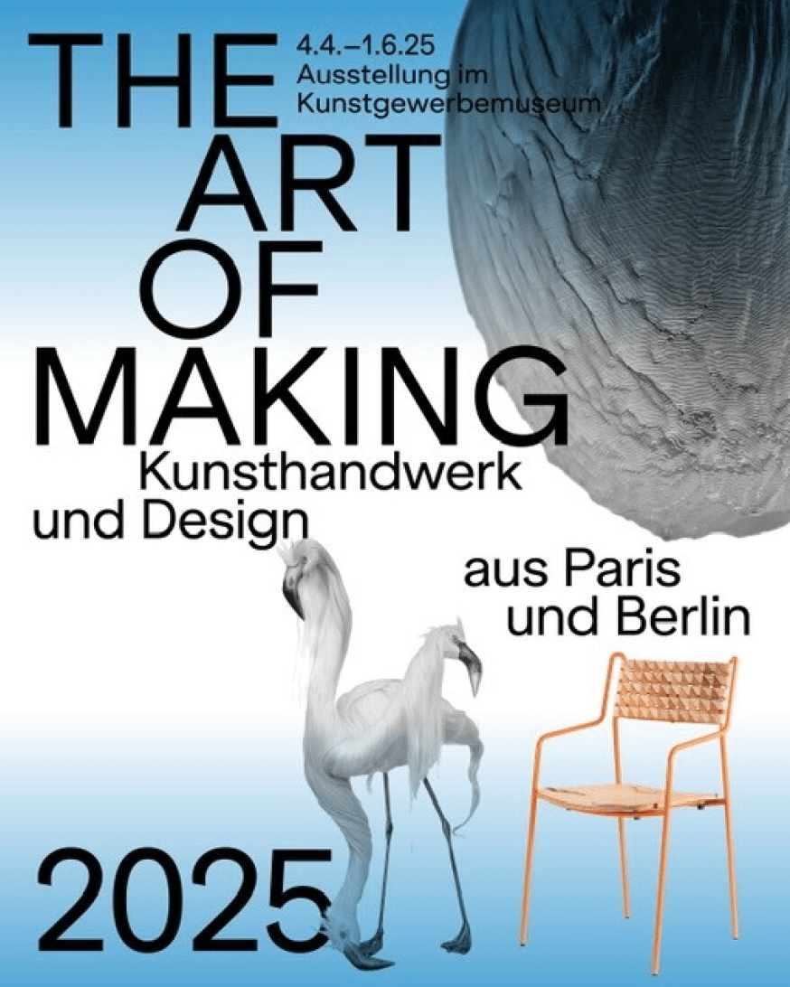 Die Ausstellung „The Art of Making 2025: Kunsthandwerk & Design aus Paris & Berlin“ zeigt vom 4. April bis 1. Juni 2025 im Kunstgewerbemuseum am Potsdamer Platz ausgewählte Berliner Stücke sowie Kunsthandwerksobjekte aus Paris. Die abwechslungsreiche Schau ist eine Bestandsaufnahme des zeitgenössischen Kunsthandwerks in beiden Hauptstädten und Zeugnis der fast 50-jährigen Partnerschaft der Berliner und Pariser Handwerkskammern: Die Objekte bilden die große Bandbreite von handwerklichem Know-how und Ideenreichtum der Gegenwart ab.