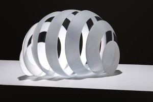 „One Second of Silence“ spannt einen weiten Bogen in seiner Untersuchung des Lichts und seiner Interaktion mit Glas – von Laserlicht und vibrierenden Spiegeln bis hin zu schimmernden intelligenten Glasfenstern, vier Meter breiten Gemälden und einem Kronleuchter, der durch das wechselnde Wetter in Toyama, Japan inspiriert wurde.