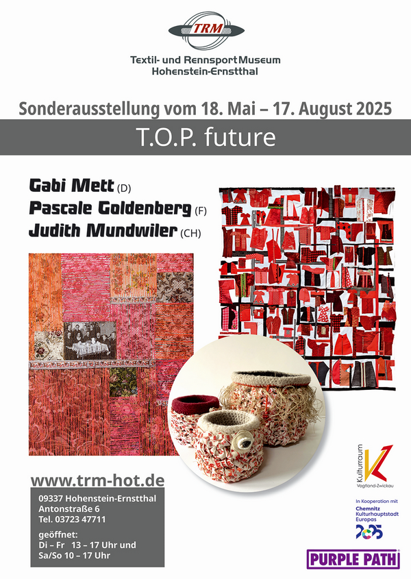 Chemnitz in Sachsen ist Kulturhauptstadt Europas 2025 und bezieht 38 Partnerkommunen rund um die Stadt durch den PURPLE PATH – einem großen Kunst- und Skulpturenweg als Kulturregion mit ein. Das Textil- und Rennsportmuseum Hohenstein-Ernstthal (TRM) ist mit seinen Ausstellungen dabei!