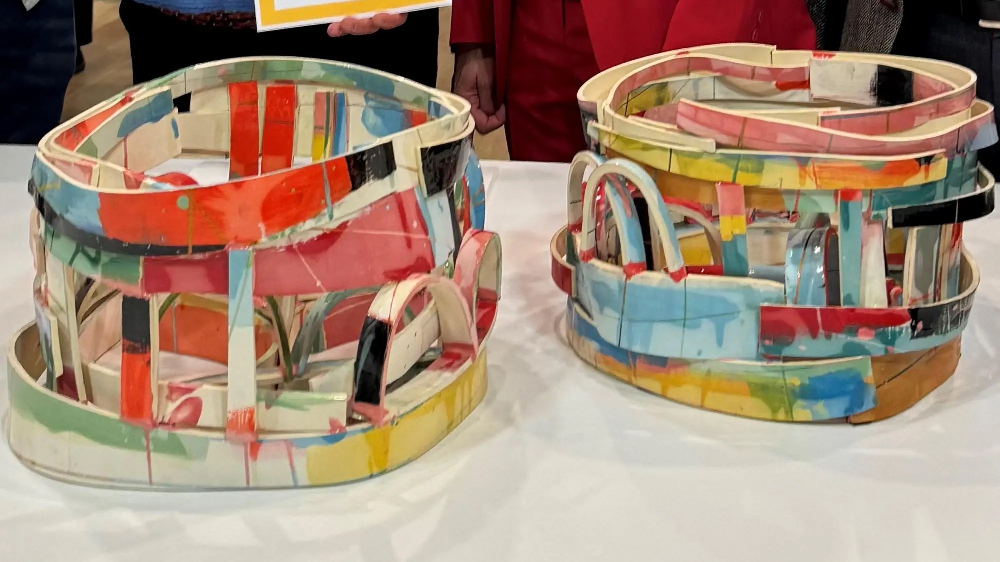 Handelt es sich um ein Karussell, um eine Arena um das Kolosseum oder ein kleines Theater? Sichtbar empfand die Jury auf alle Fälle das Spielerische im Arbeitsprozess und die Freude am keramischen Spiel. Die Arbeit von Elke Sada ist ein Spielplatz in mehrfacher Hinsicht. Für sie selbst, für das Material und für die Gedanken des Betrachters. Es ist ein Spielplatz der Farben, Formen und Gefühle“, heißt es in der Begründung der fünfköpfigen Jury.