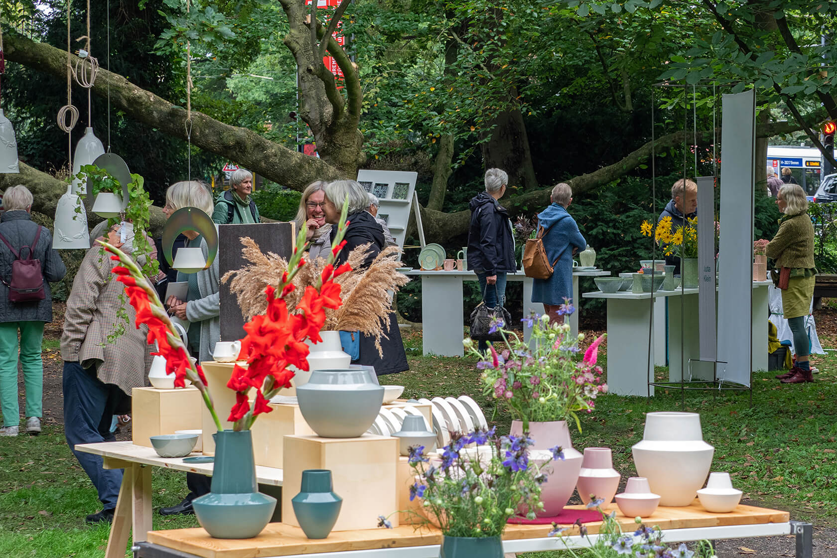Das Kunsthandwerk in Bremen ist überhaupt breit aufgestellt und verfügt auch über qualitativ herausragende Druckwerkstätten, Möbeltischlereien, Glas- und Metallwerkstätten, um nur einige Beispiele zu nennen. In der Arbeitsgemeinschaft Kunsthandwerk Bremen sind die Professionellsten und Besten aus Bremen und Umzu vereinigt. Sie präsentieren die wunderbaren Arbeiten alle zwei Jahre im Park des Focke-Museums. Die Ausstellung „Ins Grüne“ lockt jedes Mal Tausende Besucher und Besucherinnen in den Park von Haus Riensberg, wo die Objekte in dem schönen Landschaftsgarten kreativ präsentiert werden. Und auch in Haus Riensberg stellen regelmäßig einige Teilnehmer aus, was besonders charmant ist, weil das Bremer Landesmuseum hier seine Kunsthandwerk-Sammlung zeigt, darunter die herausragende Glassammlung mit Stücken aus vielen Jahrhunderten. (Pressetext)
