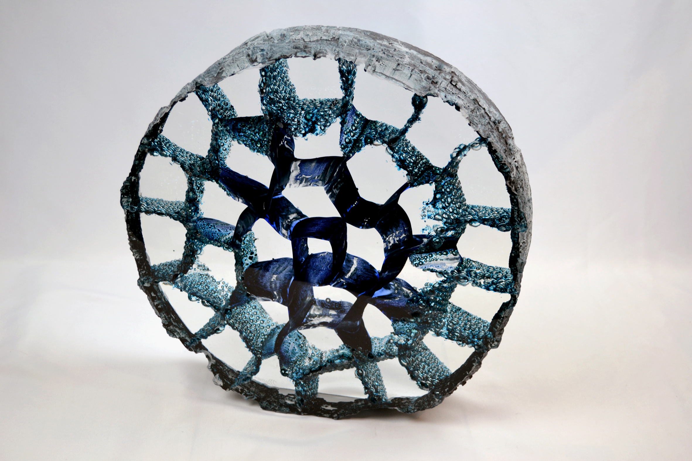 Die Geheimnisse des Minerals, das sich unter Einwirkung von Hitze verwandeln kann und uns fließende Steine, vibrierende Felswände, bewegliche Berge oder in ihrer Bewegung schwebende Wellen schenkt! Erde und Glas verbinden ihre Talente und ihre evokative Kraft, um die verstreichende Zeit anzudeuten, die Spuren hinterlässt, Abdrücke, die in der Materie versiegelt sind. Unter den Fingern der Künstler erwacht das leblose geologische Material zum Leben und wird lebendig. Bewegung und Beständigkeit koexistieren, das Vergängliche wird Teil der Ewigkeit.