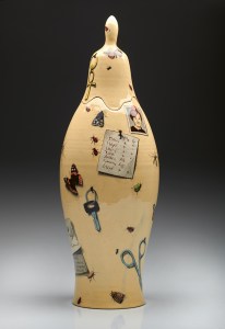 Die Künstlerin aus Halle an der Saale zeigt in real-fantastischer Art und Weise bemalte keramische Objekte. Dabei beeindruckt die nobel strahlende Farbigkeit ebenso wie die täuschend echt wirkenden realistischen Darstellungen.