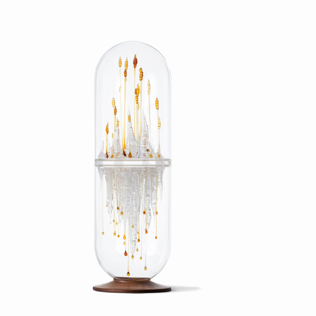 Steffen Lang versteht sich als Kunsthandwerker. Alle seine Produkte sind Unikate oder Kleinserien, die durch ihre Formgebung und ungewöhnliche Materialität bestechen. In den letzten Jahren hat er die Glasbearbeitung für sich entdeckt. Anfangs verwendete er Glas vor allem als Teil seines Schmuckschaffens. Inzwischen kreiert er mit und in Glas größere Objekte. Inspiriert von in der Natur beobachteten Mikrokosmen, wie zum Beispiel Moos und Korallen, bearbeitet er seine Stücke in traditioneller Lampentechnik. Seine Objekte, in denen eigenhändig geschmolzenes Glas mit anderen Werkstoffen kombiniert werden, sind das Produkt eines Schaffensprozesses, der sich vom Kunsthandwerk zur Kunst bewegt. (Jury)