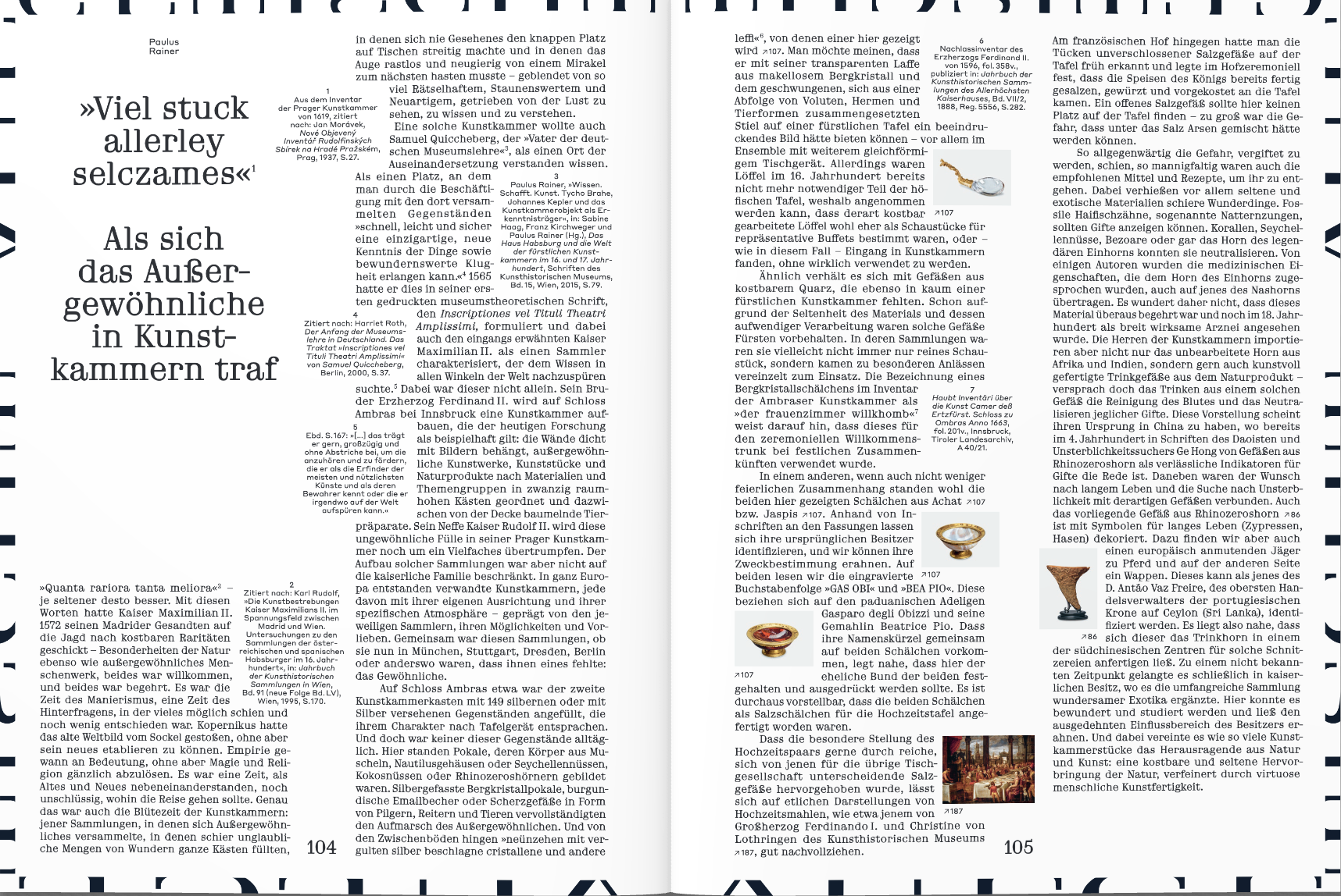 Die Ausstellung wird von einem ausserordentlich attraktiven Bilder – sorry – Katalog-Buch aus dem Verlag Arnoldsche Art Publishers begleitet, dessen spektakuläre graphische Aufmachung wir dem Ina Bauer Studio Stuttgart verdanken. Beim Essen isst das Auge mit! Dieser Gemeinplatz gilt auch für das Buch, in dem die opulente Darbietung der Exponate, als Solitäre freigestellter Fotografien, durch diverse graphische Schmankerl verfeinert wird.