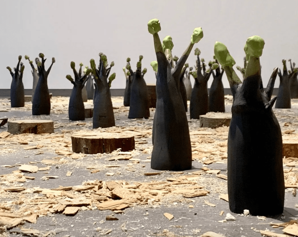 Christiane Toewe erforscht in ihrer künstlerischen Praxis gesellschaftspolitische Themen. Dabei setzt sie auf verschiedene keramische Materialien, die sie mit Licht und gelegentlich Video- und Soundelementen kombiniert, um ihre Botschaft zu visualisieren. In dieser Ausstellung widmet sich Toewe den Bäumen und beleuchtet Themen wie Wiederaufforstung, Waldbrand, Regen und die Vielfalt der Eichenarten. Um die Bedeutung von Bäumen zu unterstreichen, pflanzt sie für jeden verkauften Baum einen in ihrer Heimatstadt.