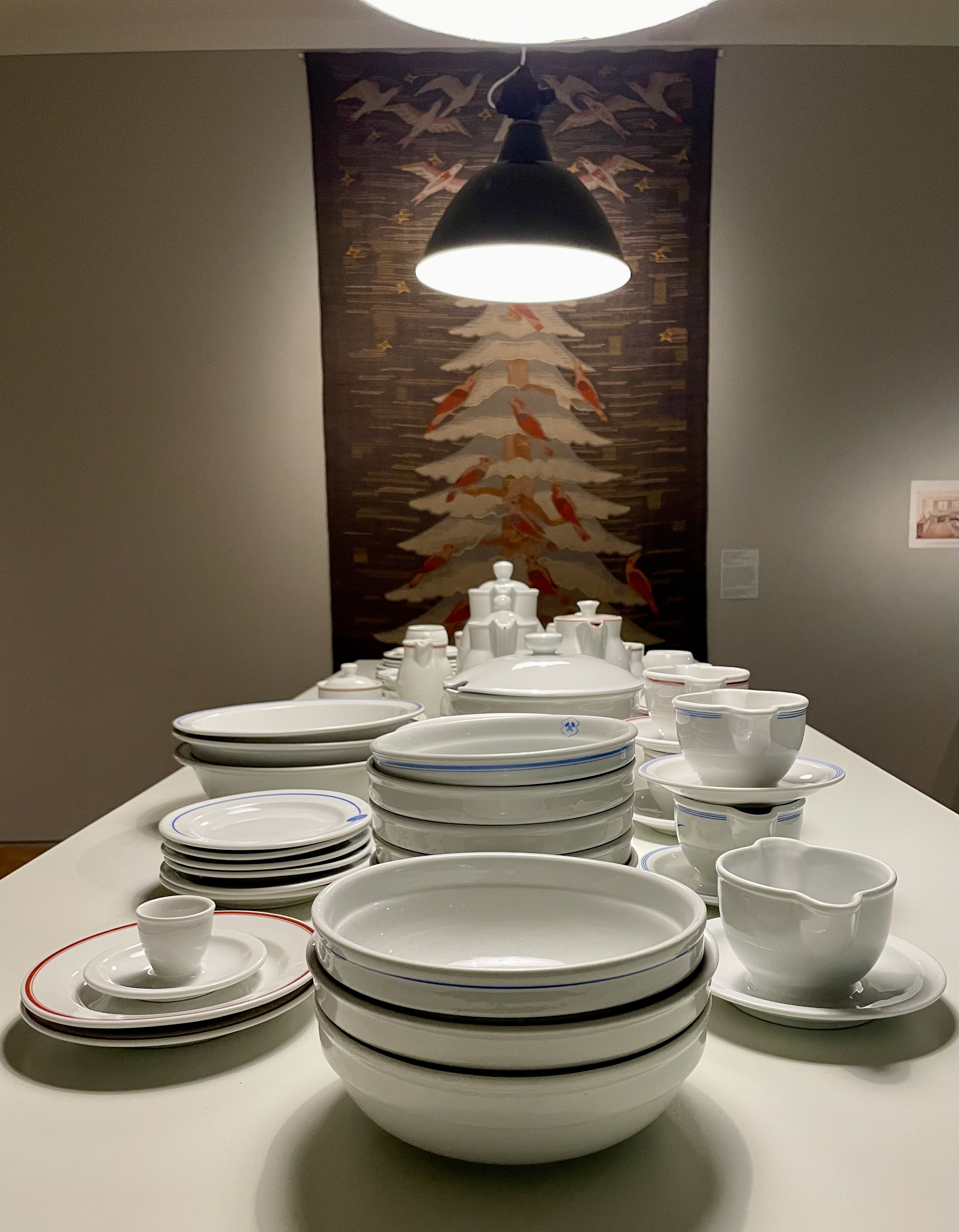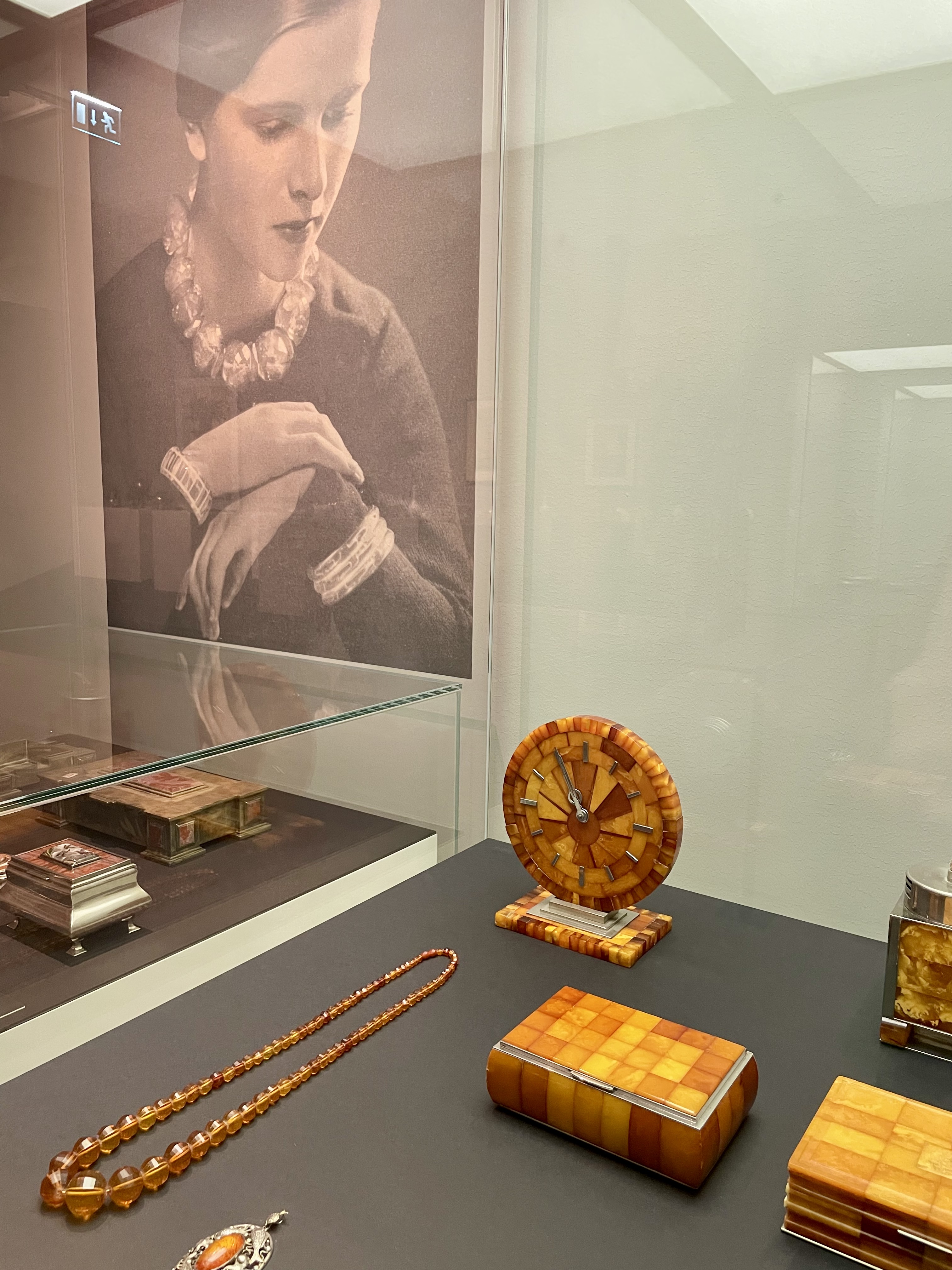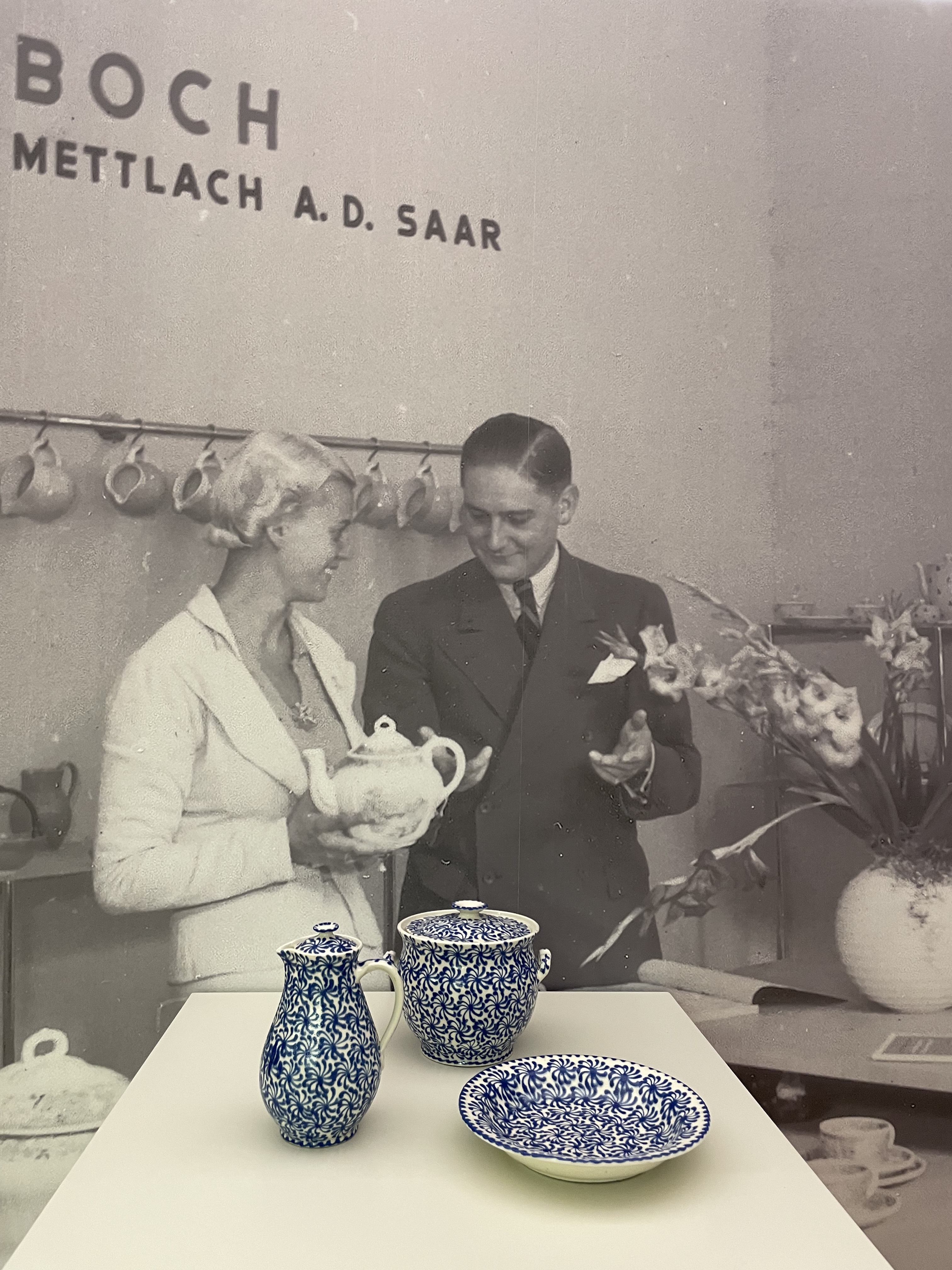 Der erste Bereich der Ausstellung spannt den Bogen von der Weimarer Republik über die Jahre des Nationalsozialismus bis in die frühe Nachkriegszeit. Viele der gezeigten Objekte wurden instaatlich geförderten Werkstätten gefertigt, auf offiziellen Ausstellungen und Leistungsschauen präsentiert oder unter Zwangsarbeit hergestellt. Fotografien, Plakate und zeitgenössische Dokumente ergänzen die Exponate und verdeutlichen, wie tief die Ideologie des Regimes in Gestaltungsprozesse, Materialwahl und Produktionsmethoden eingriff.