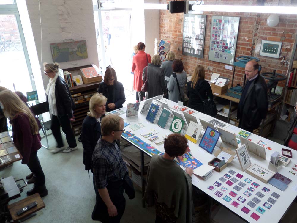 In ihrem Graphischen Atelier verbindet Katja Zwirnmann Buchgestaltung, Druckgrafik und Bucheinband. Das Spektrum reicht dabei vom Künstlerbuch und Grafikserien über originalgrafische Spielkarten bis hin zu Leuchtobjekten.