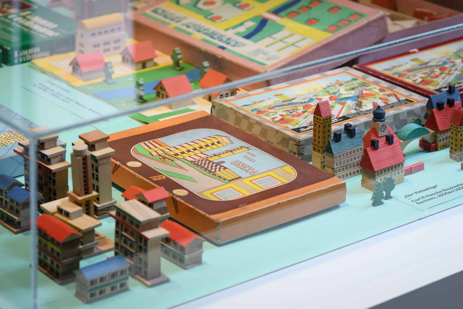 Architekturbaukästen des Grafikers Claus Krieger eine Ausstellung zu realisieren, bei der die „gläserne Barriere“ durchbrochen wird, die üblicherweise im Museum die Objekte (aus konservatorischen Gründen) vom Publikum trennt. An etwa acht Stationen im Zentrum der Ausstellung kann gespielt, gebaut und Neues entwickelt werden.