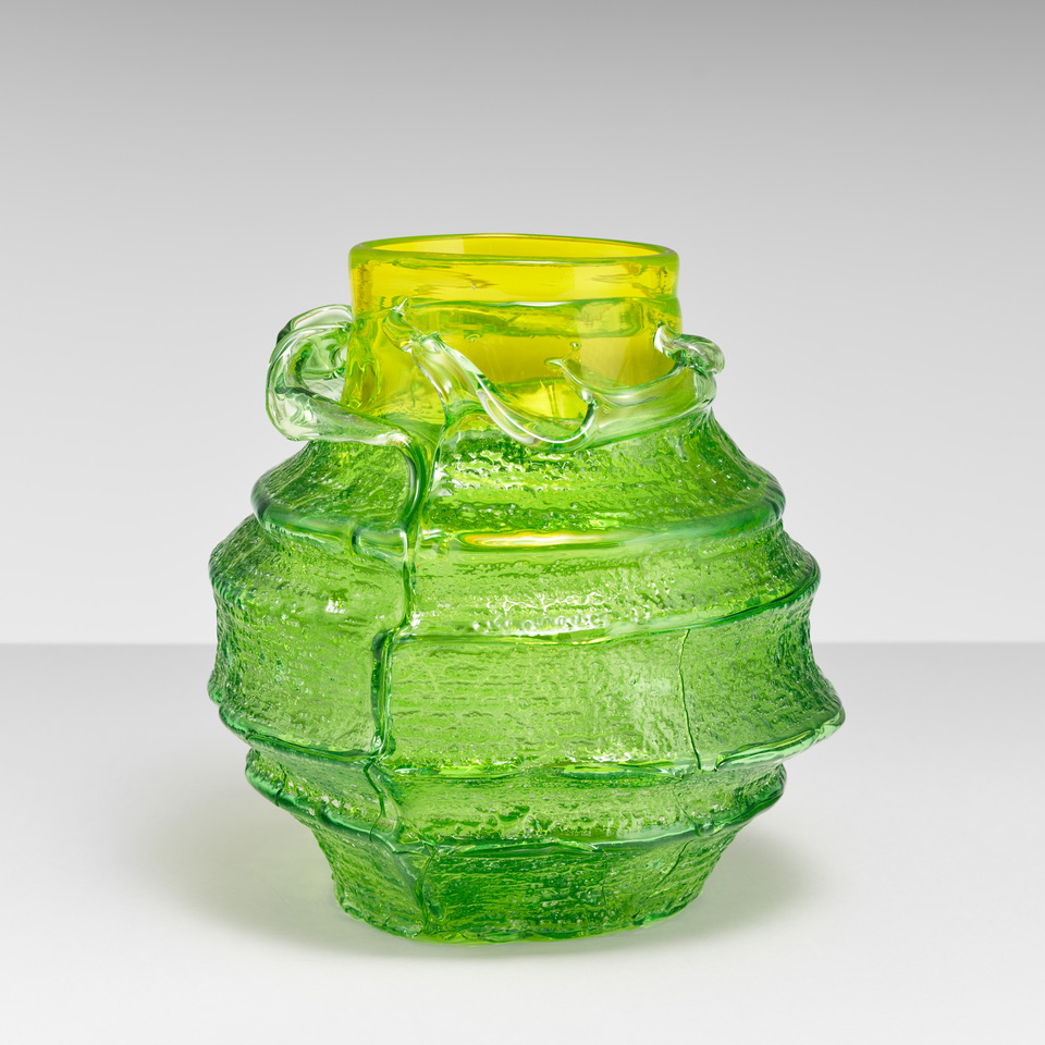 Das facettenreiche Werk von Massimo Micheluzzi zeugt in hohem Maße von der Schönheit seiner Heimatstadt Venedig. Seine legendären Murrina-Gefäße erinnern an die Reflexionen auf den Gewässern der Stadt mit ihren vielfältigen Texturen, das Grau eines bewölkten Tages oder den silbernen Glanz der Lagunen. „Ich wollte mit einem statischen Material ein Gefühl von Bewegung vermitteln, wie ein Gemälde von Canaletto“. Heute ist er einer der wenigen Glaskünstler auf Murano, die noch die aufwändige Murrina-Technik beherrschen. Ebenso einzigartig sind seine Battuto-Gläser, die an geschlagenes Silber erinnern.
