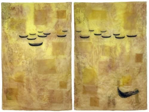 Zum 40-jährigen Bestehen der Gruppe QuiltArt entstand eine besondere Idee: Kleine Werke im Format 40 x 40 cm als Bezug zum Jubiläum. Diese kompakte Größe erlaubt eine Präsentation in kleineren Räumen oder als Ergänzung zur großen Ausstellung „Layers and Narratives“.