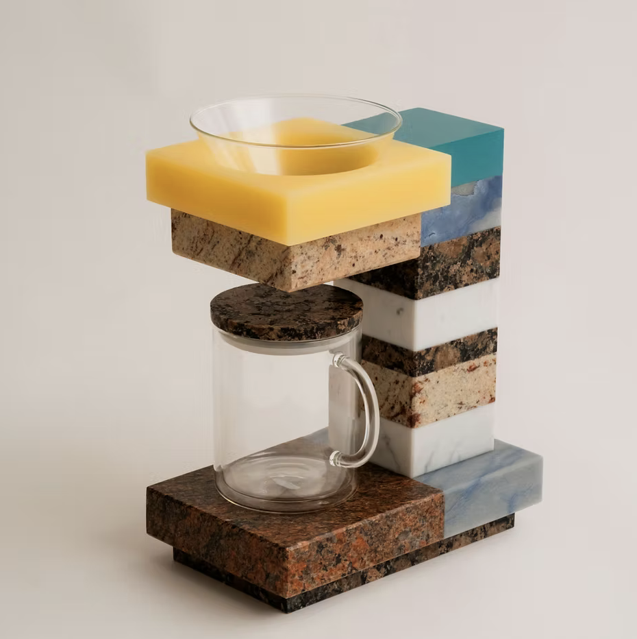Die Teilnehmer sind eingeladen, zu erforschen, ob Möbel Erinnerungen – emotionale, taktile oder materielle -transportieren können, und Stücke zu schaffen, die unsere intime Beziehung zu Form und Oberfläche erweitern. Dieser konzeptionelle Schwerpunkt setzt die Tradition von COLLECTIBLE fort, bahnbrechende thematische Erkundungen in Auftrag zu geben, die Forschung, Ästhetik und Innovation miteinander verbinden. In diesem Jahr wurde die Szenografie von CURATED von den Szenografen und Designern Romain Joly und Lisa Bravi in einem mimetischen Textil-Set konzipiert. Ausgangspunkt war für sie die Figur des Kartons, ein funktionales, vergängliches und banales Objekt, das sowohl als Form, Oberfläche und Struktur betrachtet wird, während es gleichzeitig von seiner ursprünglichen Materialität abgelenkt wird. Sein flaches Muster und sein Volumen werden zu szenografischen Prinzipien, die in den Ausstellungsraum übertragen werden.