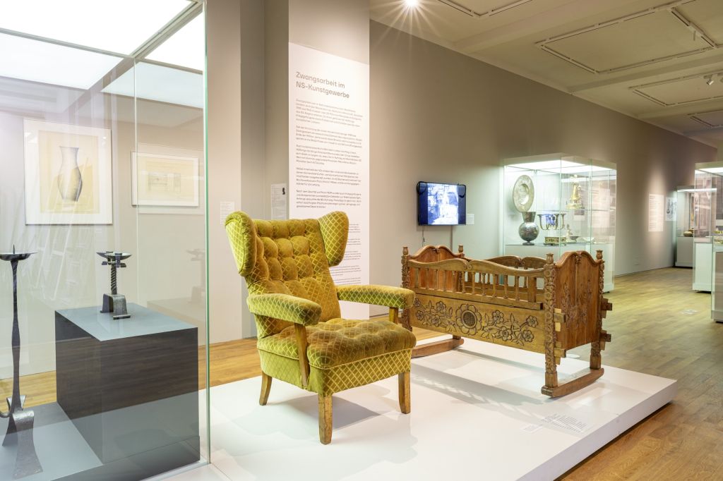 Die Ausstellung FORMEN DER ANPASSUNG. KUNSTHANDWERK UND DESIGN IM NATIONAL- SOZIALISMUS (27.11.2025 – 12.4.2026) nähert sich einem bislang wenig beachteten Kapitel deutscher Gestaltungsgeschichte. Sie verdeutlicht, wie politische Direktiven, ideologische Leitlinien und ökonomische Rahmenbedingungen Gestaltung prägten und veränderten. Rund 400 Exponate aus Museen, Archiven und Sammlungen aus Deutschland sowie dem eigenen Sammlungsbestand werden präsentiert. Im Zentrum stehen Objekte des täglichen Gebrauchs – Vasen, Kannen, Möbel, Textilarbeiten, Geschirre aus Glas, Porzellan, Holz und Metallen – die in den Jahren 1933 bis 1945 entstanden. Darüber hinaus reflektiert die Ausstellung auch kritisch die ambivalente Haltung des GRASSI Museums für Angewandte Kunst in der NS-Zeit. (Pressetext)