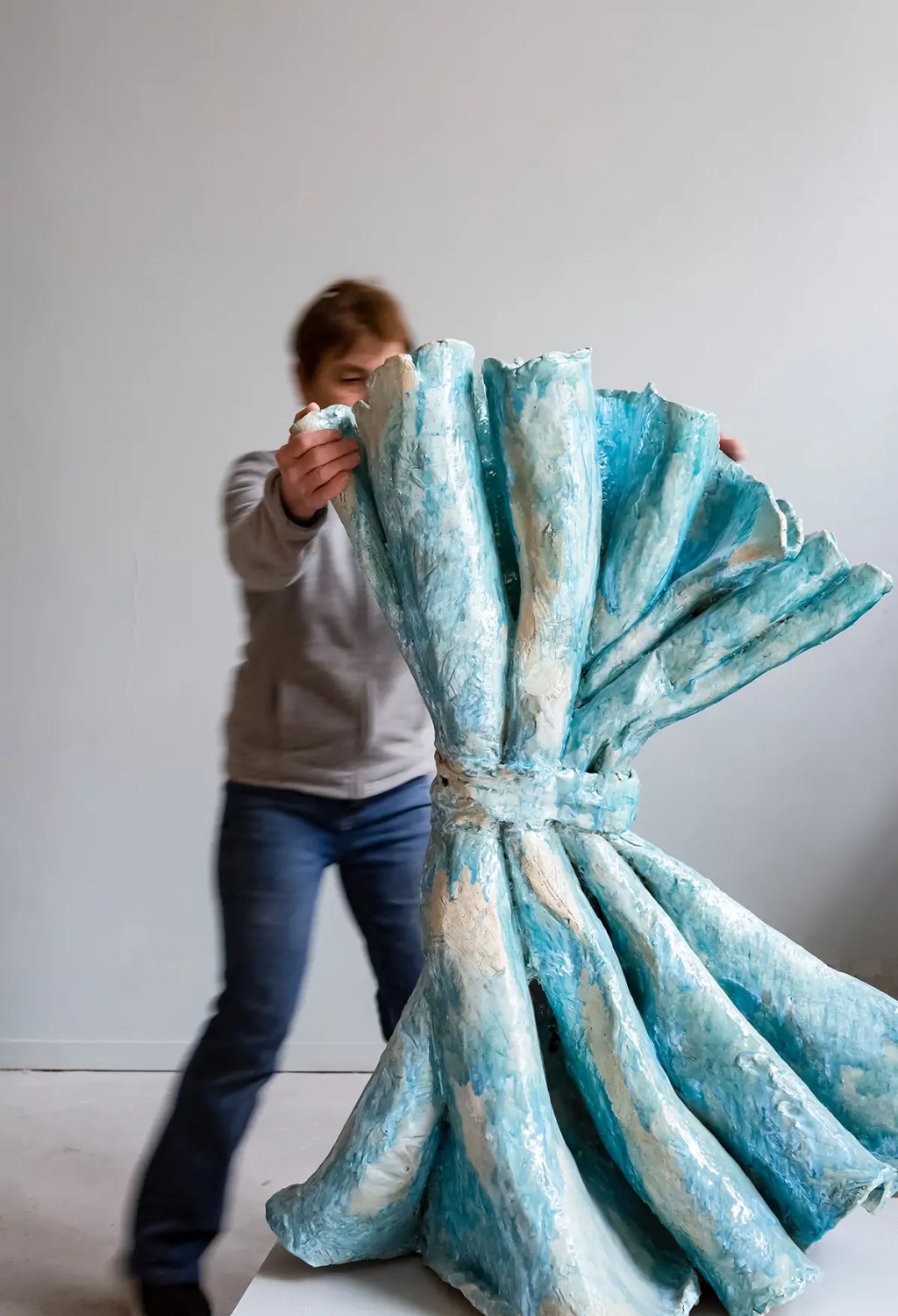 Großformatig, farbenfroh und spielerisch – die Arbeiten der Bildhauerin Clémence van Lunen (geb. 1959) verbreiten beim Betrachten eine „kribbelige Unruhe“. Ihre Skulpturen beeindrucken durch ihre Monumentalität, eine geknetete, lebendige Oberfläche und eine gewisse humorvolle Rätselhaftigkeit. Aus Keramik formt sie große Werke von scheinbar simplen Dingen wie Vögeln, Blumen, Landschaften oder faltenreichen Vorhängen. Und obwohl sie raumgreifende Volumen jenseits von Gefäßformen schafft, behalten sie den spielerischen Charakter einer Skizze. Dabei lenkt van Lunen nicht ohne Ironie immer wieder den Blick auf den immensen Aufwand und freudigen »Kampf«, den sie betreibt, um ihre Skulpturen, meist in Serien, zu konstruieren.